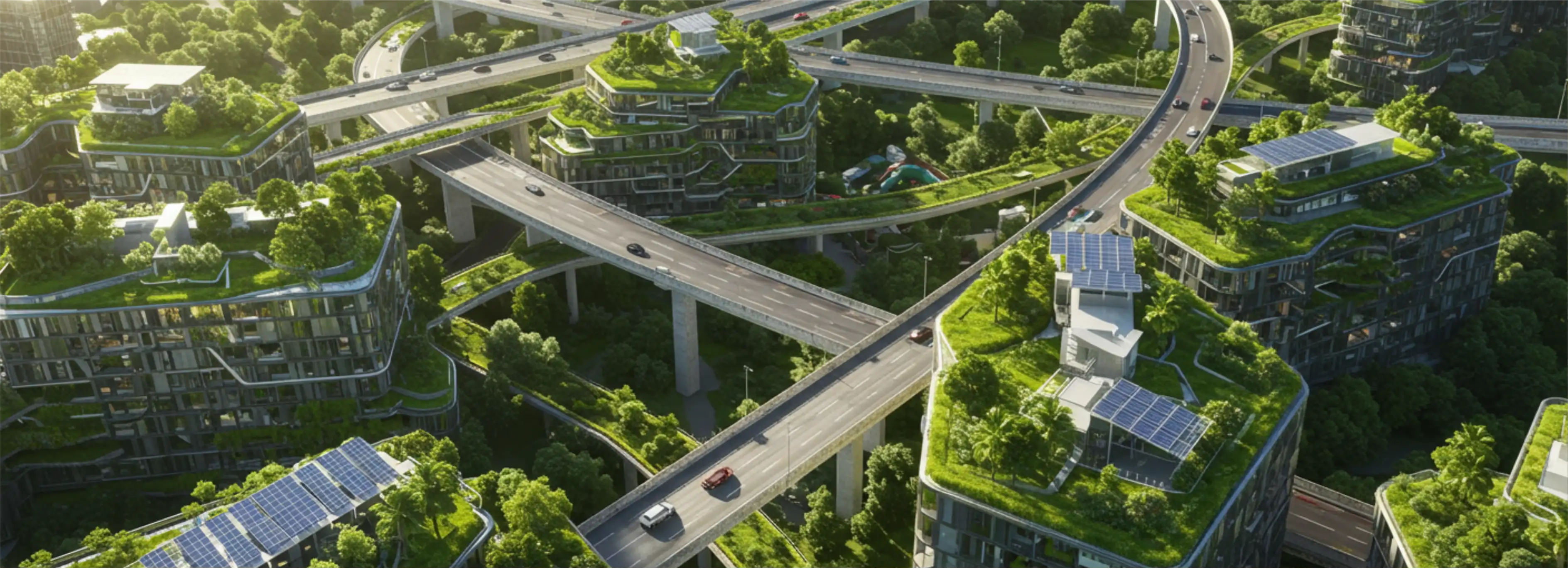 We support sustainability integration in infrastructure design, facilitate green building certification processes (e.g., EDGE, LEED), and promote resource efficiency and circular economy practices.